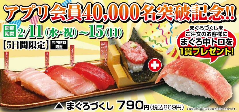 平禄寿司公式アプリ登録者数40,000人突破を記念いたしまして、